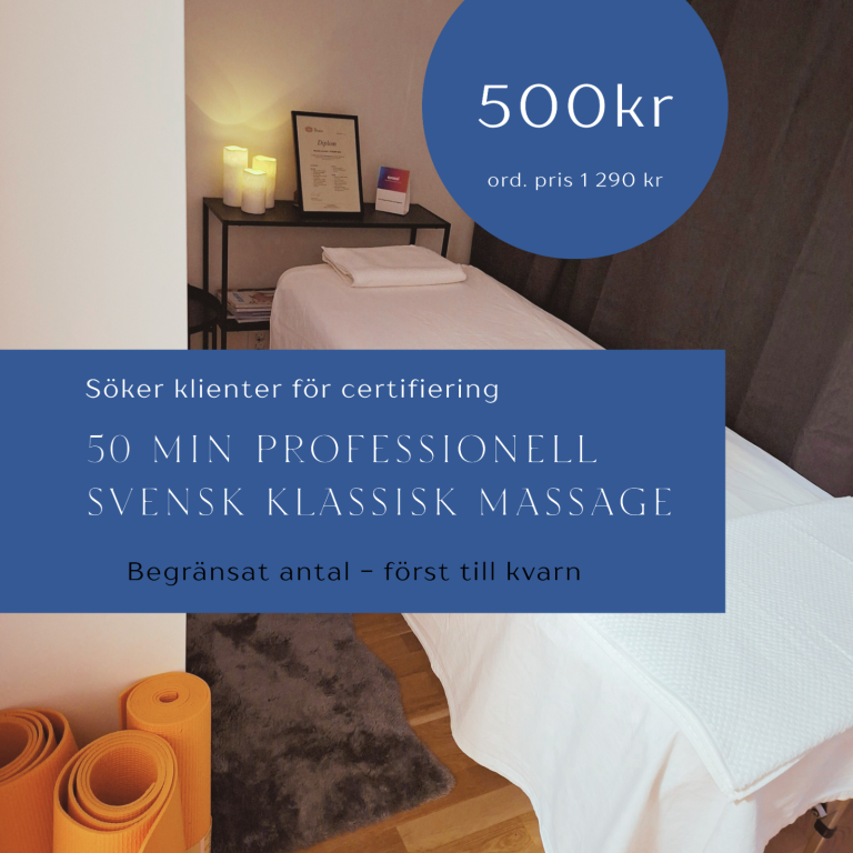 - Fokus: 40 minuter individuellt anpassad sittande massage eller bindvävs-/fasciabehandling.